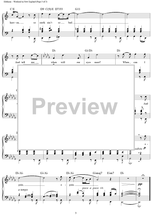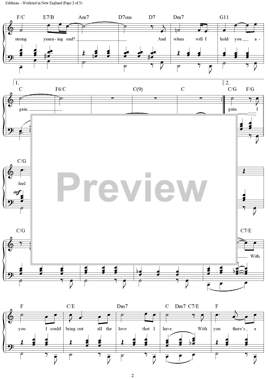 Digital Sheet Music for Weekend in New England by Barry Manilow, Randy Edelman scored for Easy Organ/Vocal; id:220568
