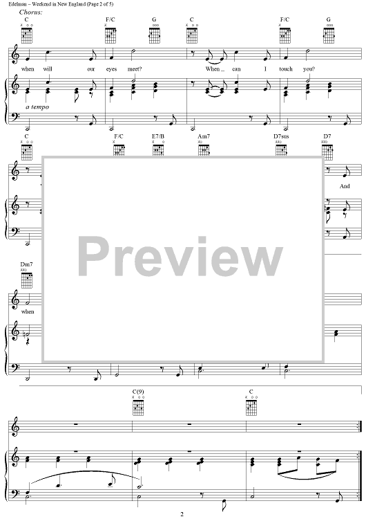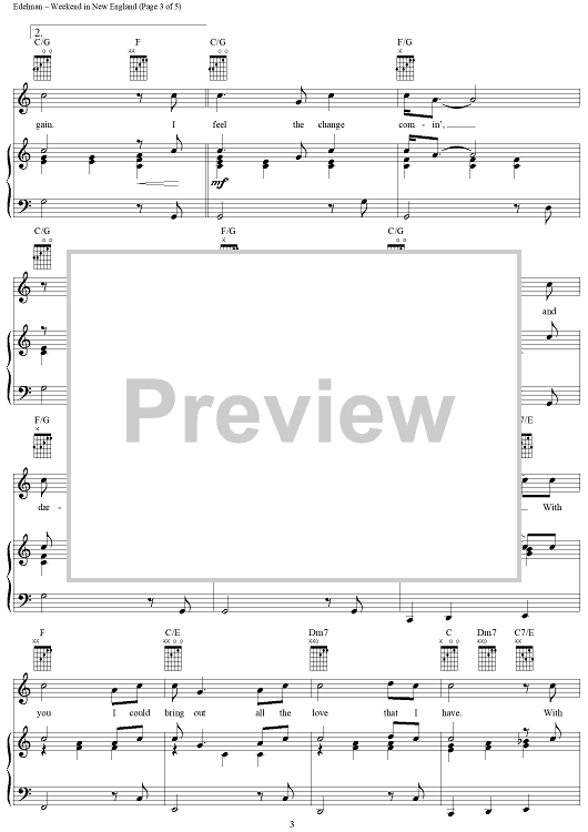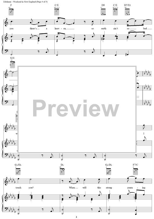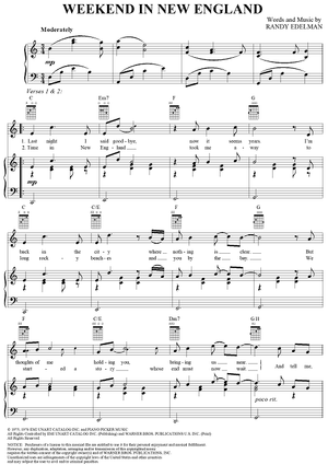 Digital Sheet Music for Weekend in New England by Randy Edelman scored for Piano/Vocal/Chords; id:270559