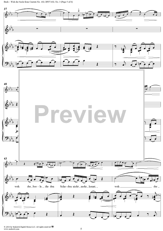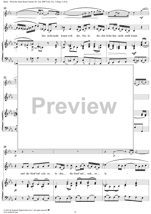 Digital Sheet Music for "Weh! der Seele", Aria, No. 3 from Cantata No. 102: "Herr, deine Augen sehen nach dem Glauben" - Piano Score by Johann Sebastian Bach scored for Alto, Oboe and Piano or Organ; id:303623