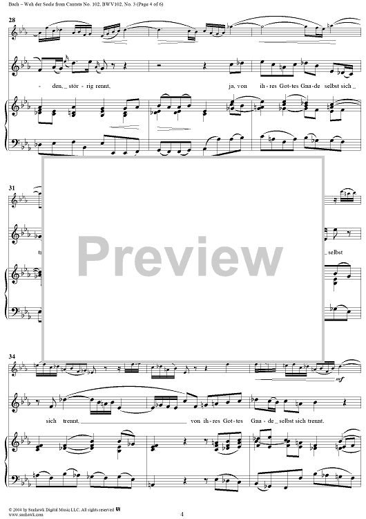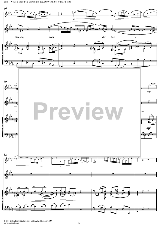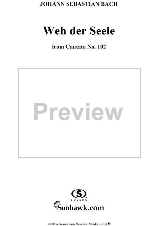 ""Weh! der Seele", Aria, No. 3 from Cantata No. 102: "Herr, deine Augen sehen nach dem Glauben" - Piano Score" Sheet Music by Johann Sebastian Bach