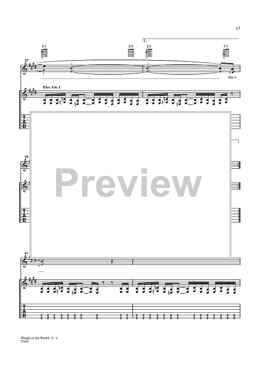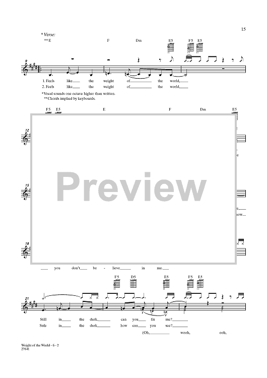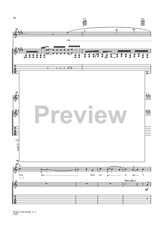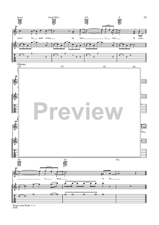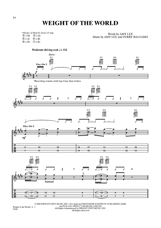 Digital Sheet Music for Weight of the World by Evanescence, Amy Lee, Terry Balsamo scored for Guitar Tab/Vocal; id:360506