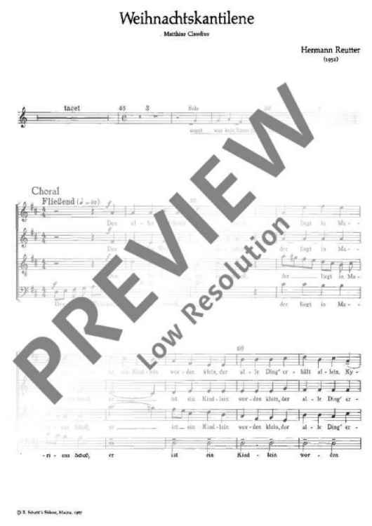 "Weihnachts-Kantilene - Choral Score" Sheet Music by Hermann Reutter