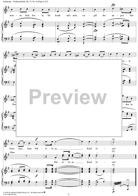 Digital Sheet Music for Weihnachtslied, No. 16, Op. 79 by Hans Christian Andersen, Robert Schumann scored for Voice/Piano; id:318140