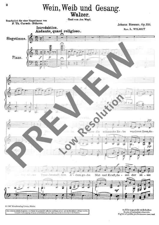 Digital Sheet Music for Wein, Weib und Gesang by Johann Strauß (Son) scored for Voice And Piano; id:472167