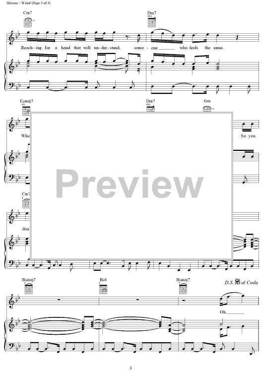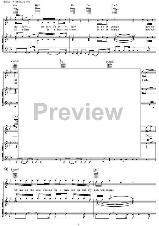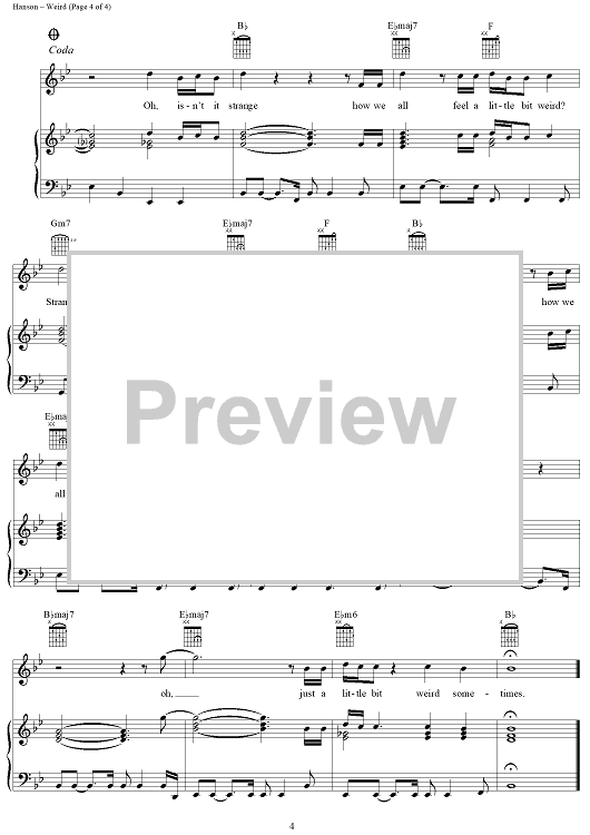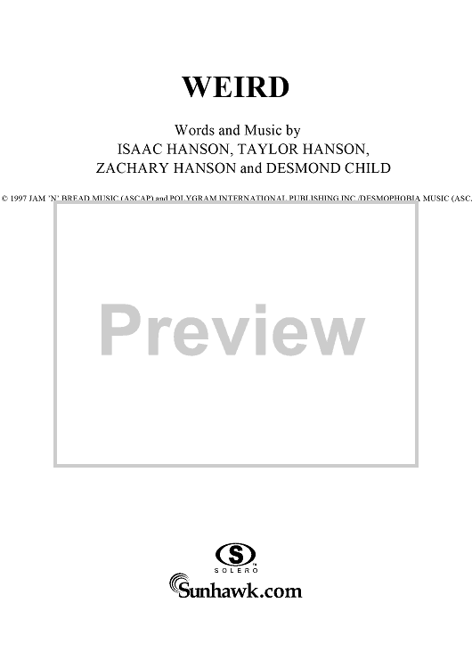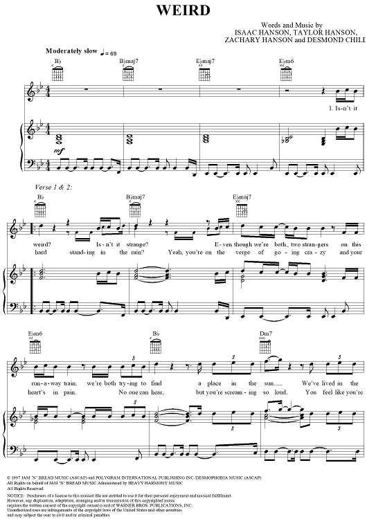 Digital Sheet Music for Weird by Isaac Hanson, Taylor Hanson, Zac Hanson, Desmond Child, Hanson scored for Piano/Vocal/Chords; id:112753