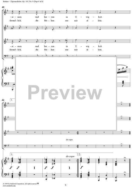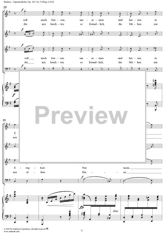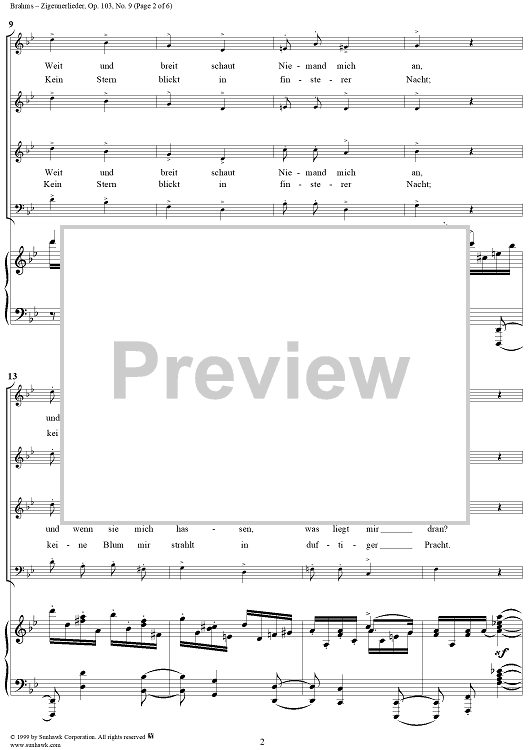 Digital Sheet Music for Weit und breit schaut niemand mich an - From "Zigeunerlieder" Op. 103, No. 9 by Johannes Brahms scored for Voice/Piano; id:274774