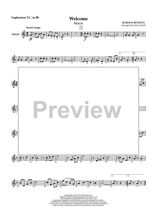 Digital Sheet Music for Welcome (March) - Euphonium TC in Bb by Larry Clark, Harold Bennett scored for Concert Band; id:436435