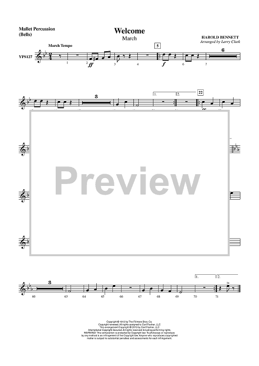 Digital Sheet Music for Welcome (March) - Mallet Percussion by Larry Clark, Harold Bennett scored for Concert Band; id:436438