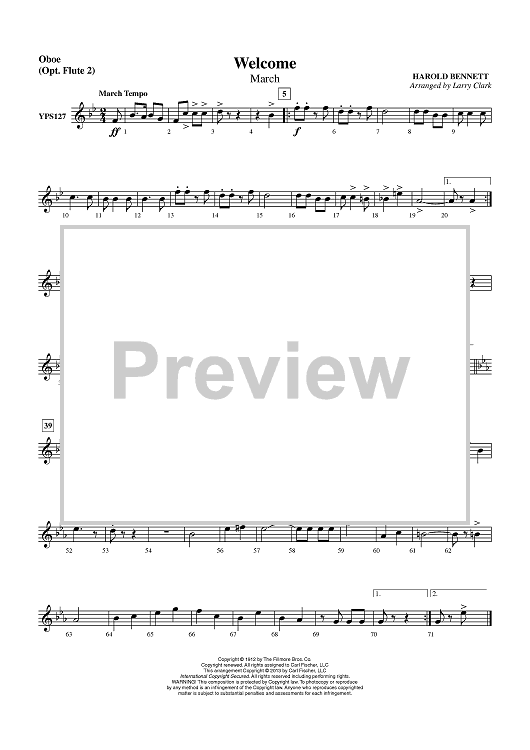 Digital Sheet Music for Welcome (March) - Oboe (Opt. Flute 2) by Larry Clark, Harold Bennett scored for Concert Band; id:436423