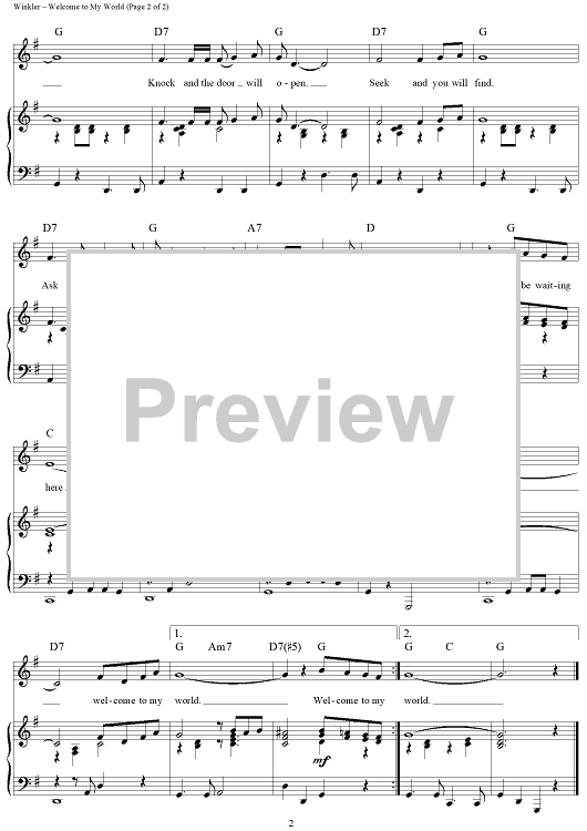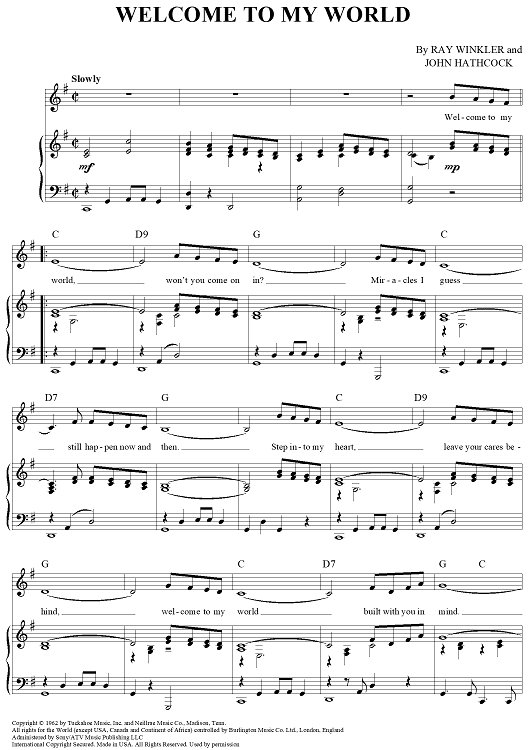 Digital Sheet Music for Welcome to My World by Jim Reeves, Ray Winkler, John Hathcock scored for Piano/Vocal/Chords; id:361418