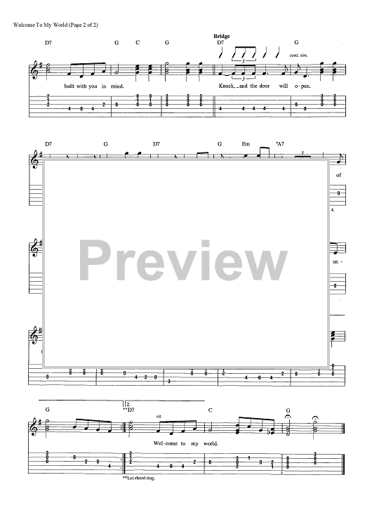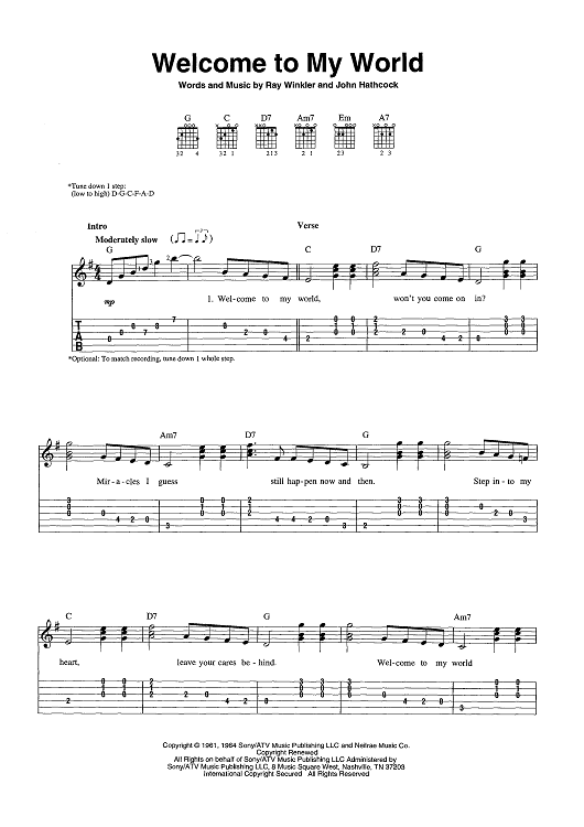 Digital Sheet Music for Welcome to My World by Jim Reeves, Ray Winkler, John Hathcock scored for Easy Guitar Tab/Vocal/Chords; id:456832