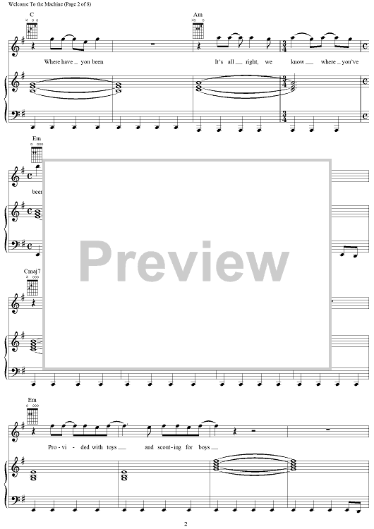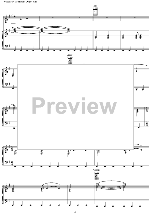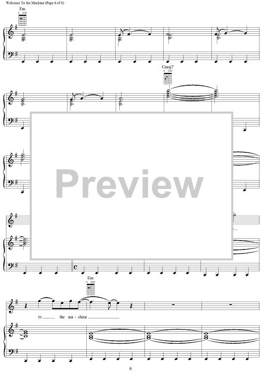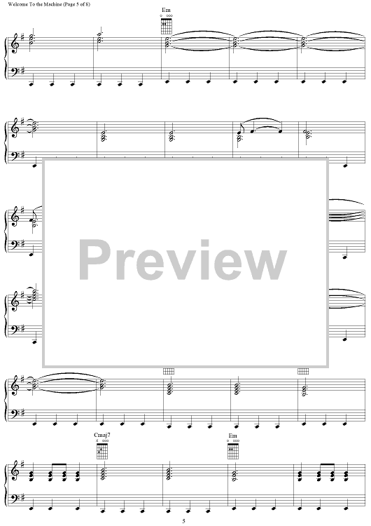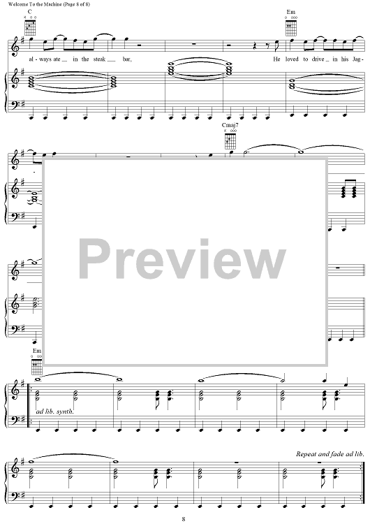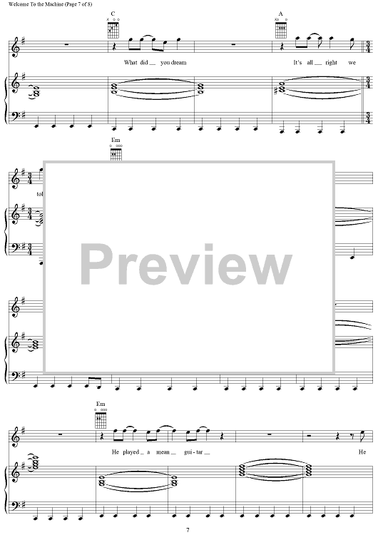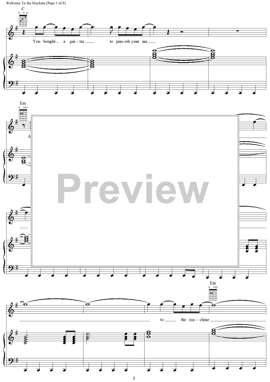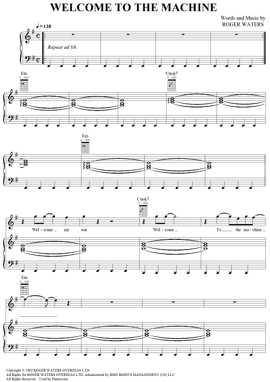 Digital Sheet Music for Welcome to the Machine by Pink Floyd, Roger Waters scored for Piano/Vocal/Chords; id:284278
