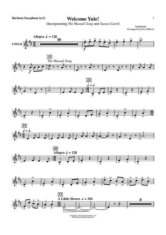 "Welcome Yule! - Baritone Sax" Sheet Music by Traditional
