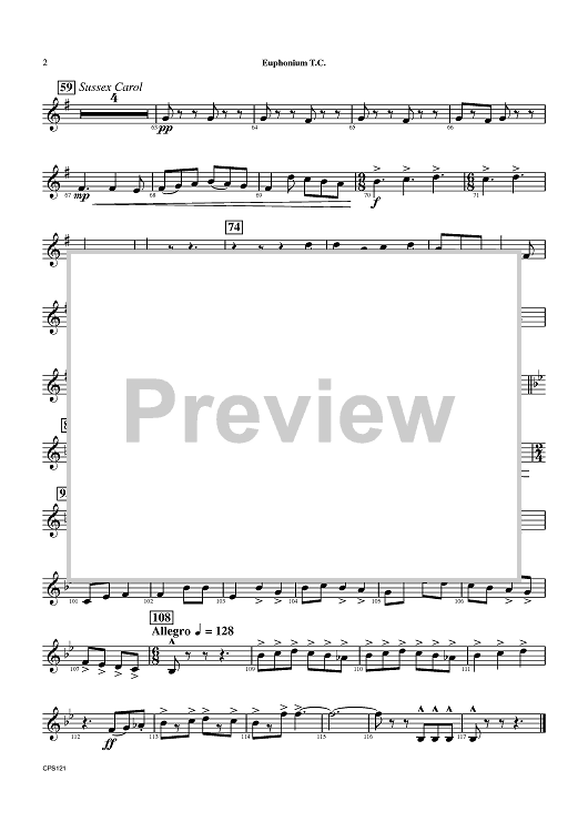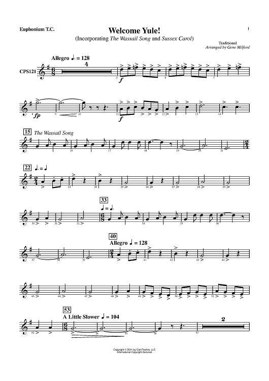Digital Sheet Music for Welcome Yule! - Euphonium TC by Traditional, Gene Milford scored for Concert Band; id:420343