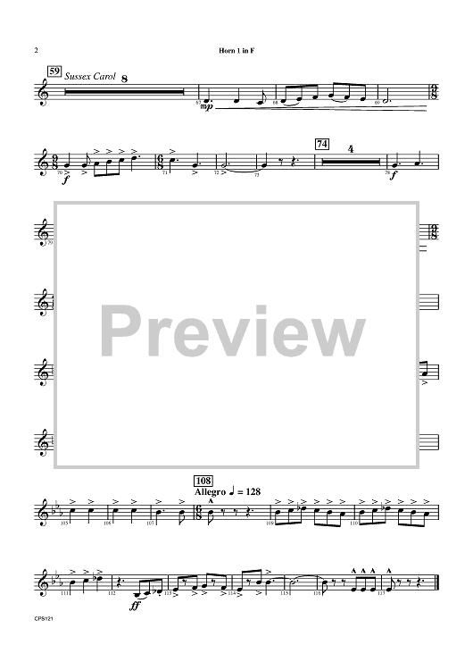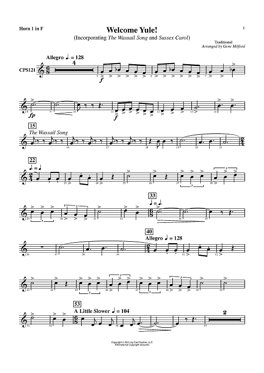 Digital Sheet Music for Welcome Yule! - Horn 1 in F by Traditional, Gene Milford scored for Concert Band; id:420339