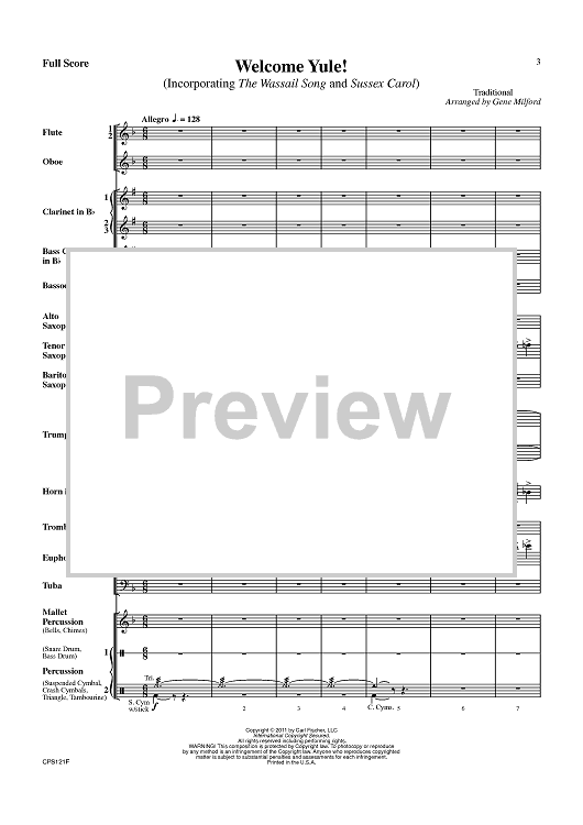 Digital Sheet Music for Welcome Yule! - Score by Traditional, Gene Milford scored for Concert Band; id:420323
