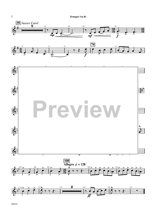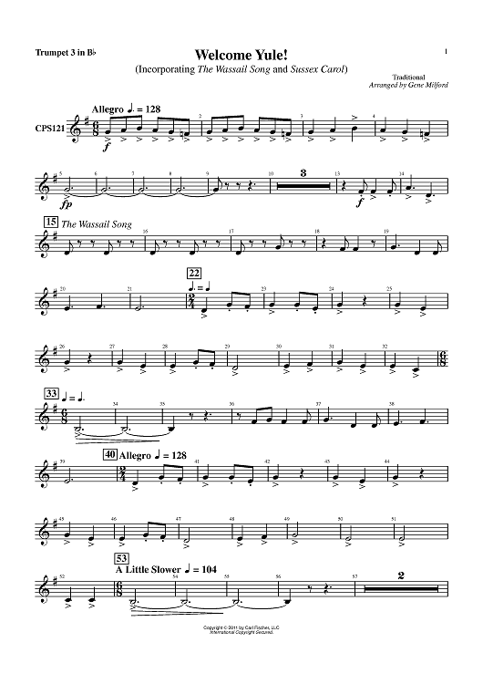 Digital Sheet Music for Welcome Yule! - Trumpet 3 in Bb by Traditional, Gene Milford scored for Concert Band; id:420338