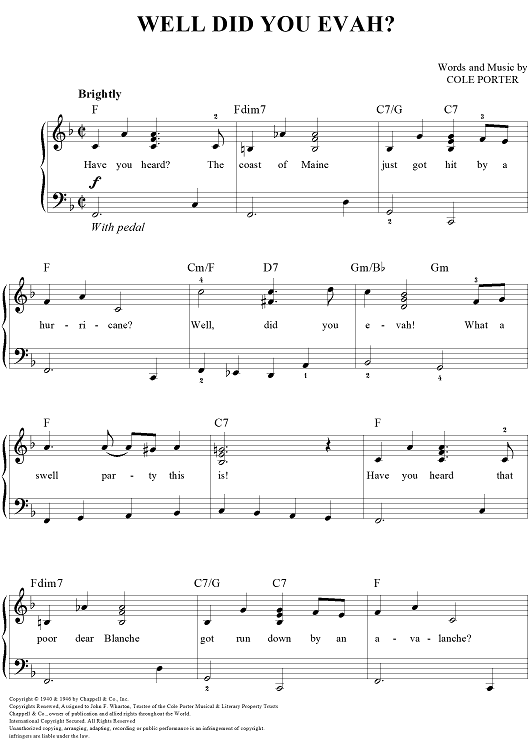 Digital Sheet Music for Well Did You Evah? by Cole Porter scored for Easy Piano/Vocal/Chords; id:433073