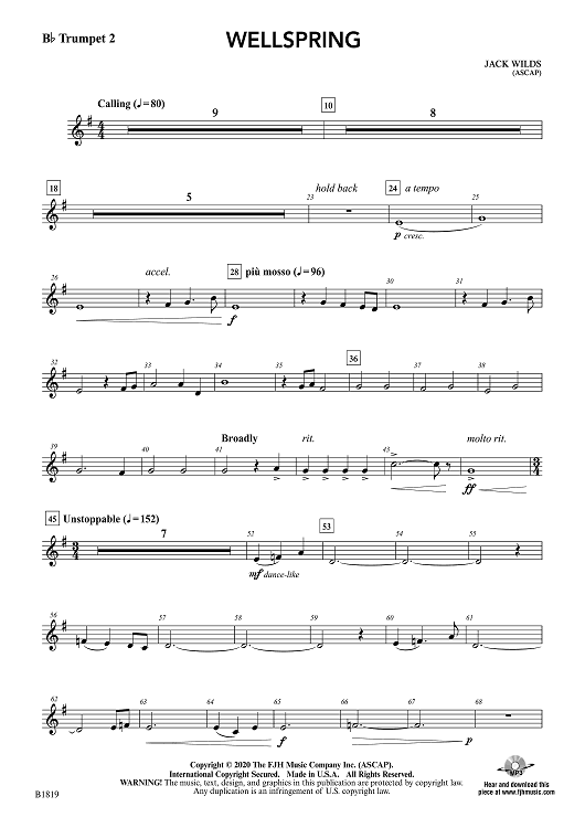 "Wellspring - Bb Trumpet 2" Sheet Music by Jack Wilds