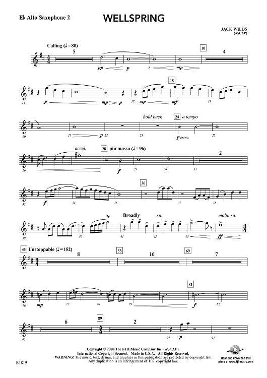 Digital Sheet Music for Wellspring - Eb Alto Saxophone 2 by Jack Wilds scored for Concert Band; id:508490