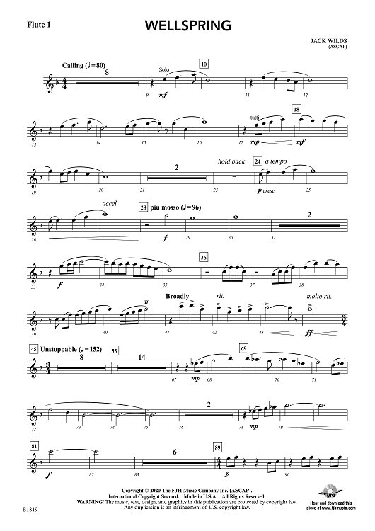 Digital Sheet Music for Wellspring - Flute 1 by Jack Wilds scored for Concert Band; id:508483