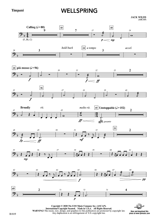 Digital Sheet Music for Wellspring - Timpani by Jack Wilds scored for Concert Band; id:508502