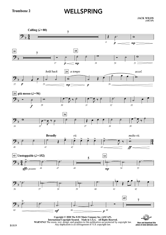 "Wellspring - Trombone 2" Sheet Music by Jack Wilds