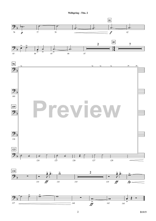 Digital Sheet Music for Wellspring - Trombone 2 by Jack Wilds scored for Concert Band; id:508497