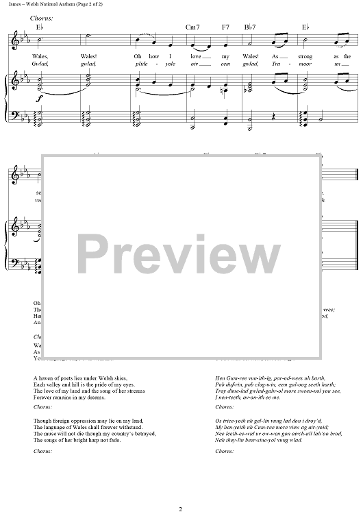 Digital Sheet Music for Welsh National Anthem by Norman Monath, James James, Evan James scored for Piano/Vocal/Chords; id:265694
