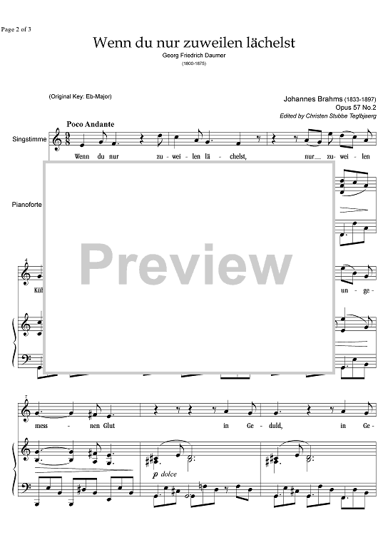 "Wenn du nur zuweilen lächelst Op.57 No. 2" Sheet Music by Johannes Brahms
