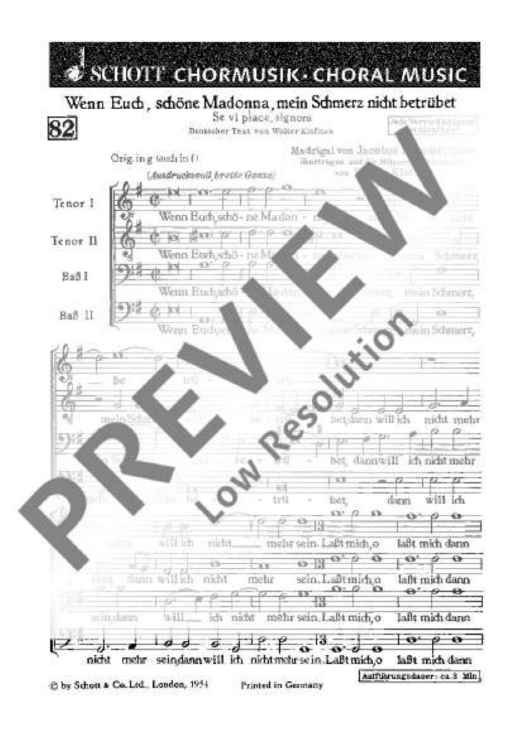 Digital Sheet Music for Wenn Euch, schöne Madonna - Choral Score by Jacob Arcadelt scored for Men's Choir; id:479743