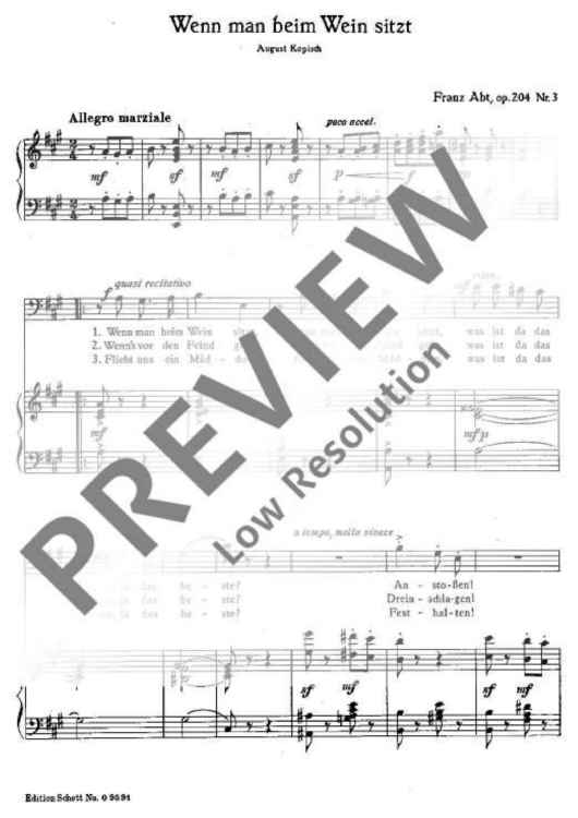 Digital Sheet Music for Wenn man beim Wein sitzt in A major by Franz Abt scored for Baritone And Piano; id:482309