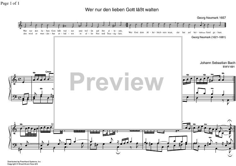"Wer nur den lieben Gott lasst walten BWV 691" Sheet Music by Johann Sebastian Bach