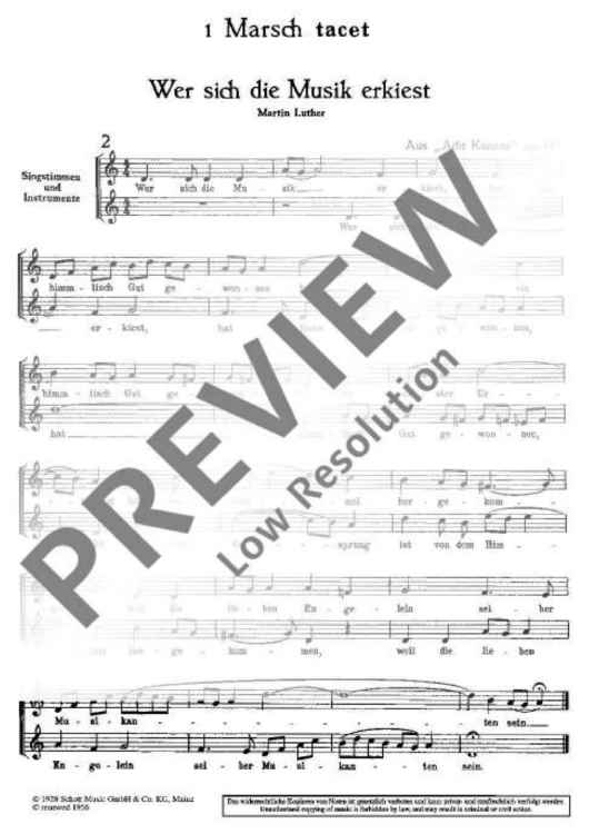 Digital Sheet Music for Wer sich die Musik erkiest - Choral Score by Paul Hindemith scored for Mixed Choir (sabar) Or Children's Choir (smeza) With String Quartet Or Other Melody Instruments; id:484069