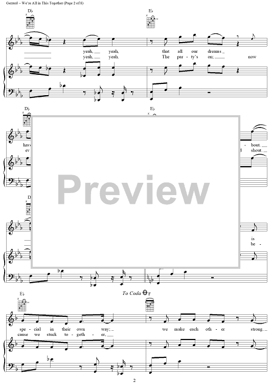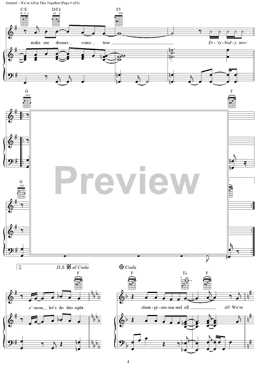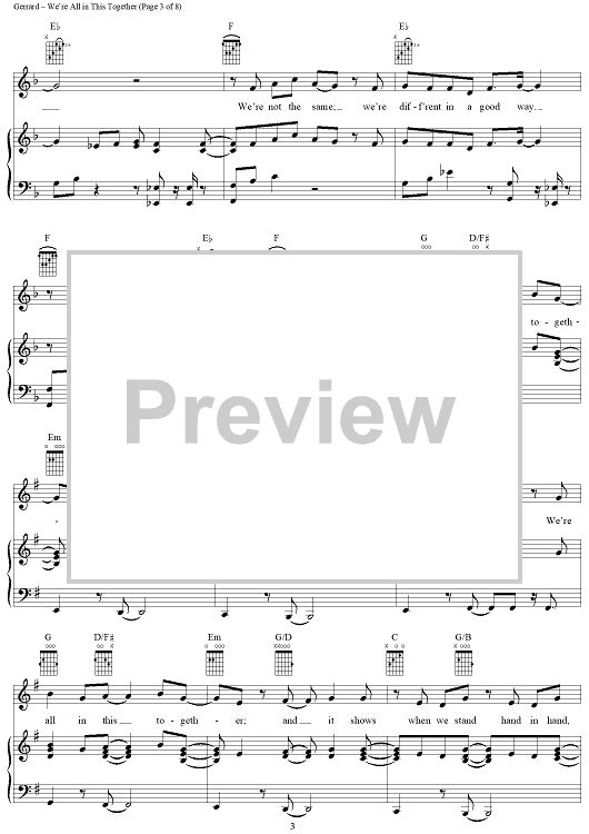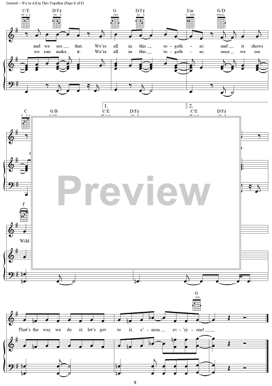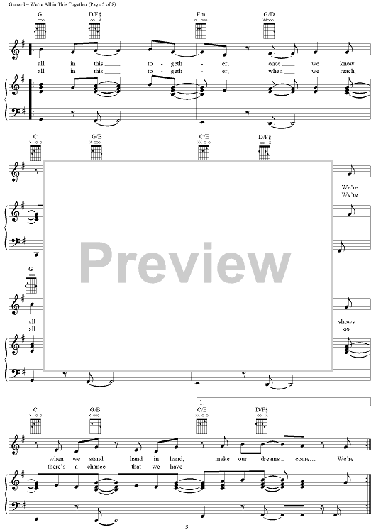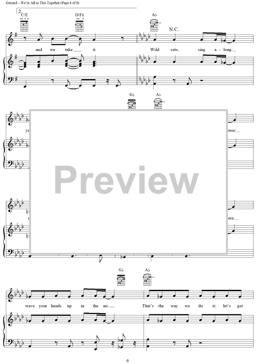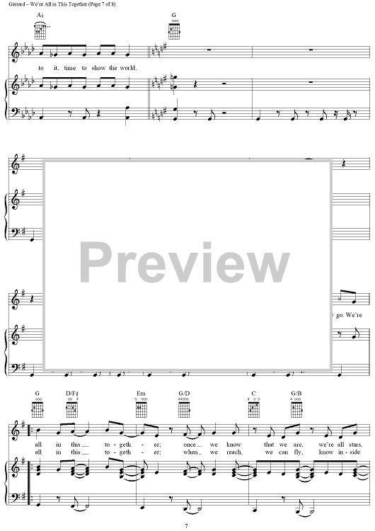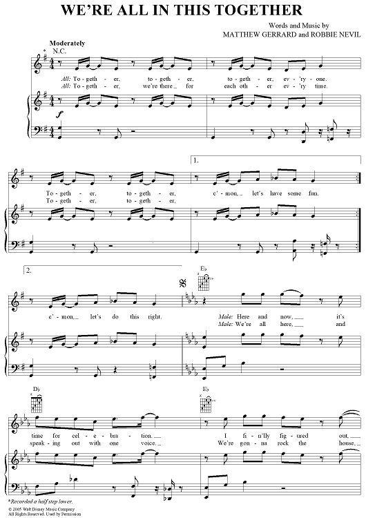 Digital Sheet Music for We're All in This Together by Matthew Gerrard, Robbie Nevil scored for Piano/Vocal/Chords; id:366850