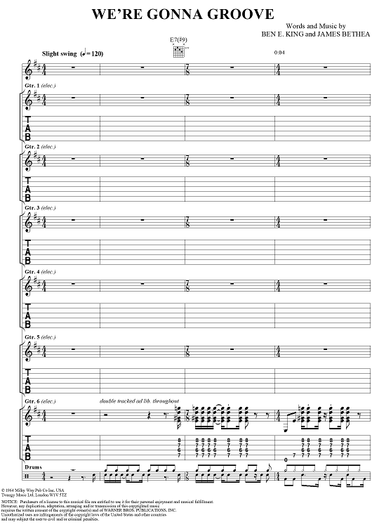Digital Sheet Music for We're Gonna Groove by , Ben E. King, James Bethea, Led Zeppelin scored for Guitar Tab/Vocal; id:313592