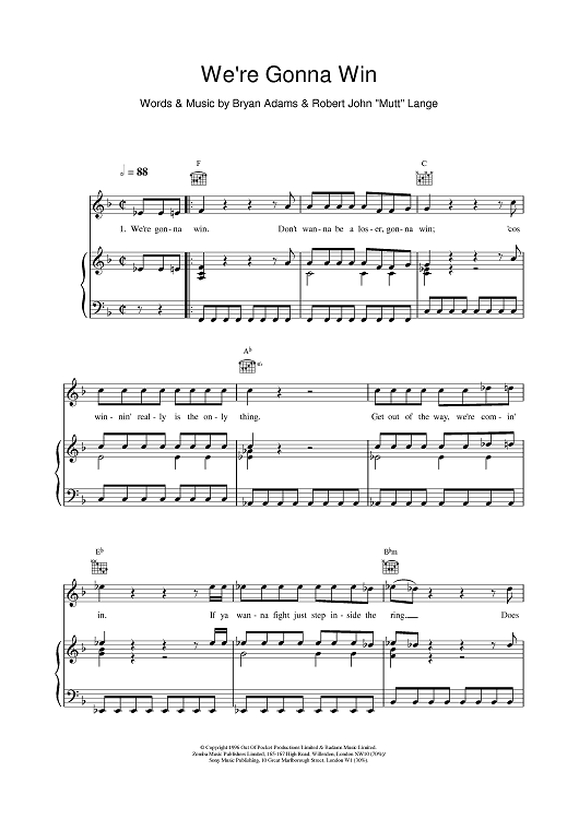 Digital Sheet Music for We're Gonna Win by Bryan Adams, Robert Lange, Victoria Adams scored for Piano/Vocal/Chords; id:379757