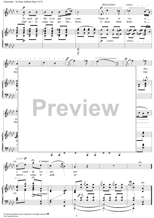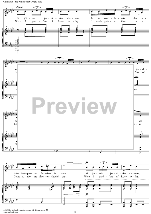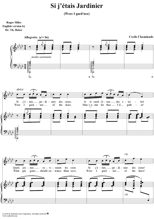Digital Sheet Music for Were I gard'ner (Si j'étais Jardinier) by Cécile Chaminade, Roger Miles scored for Voice/Piano; id:273145