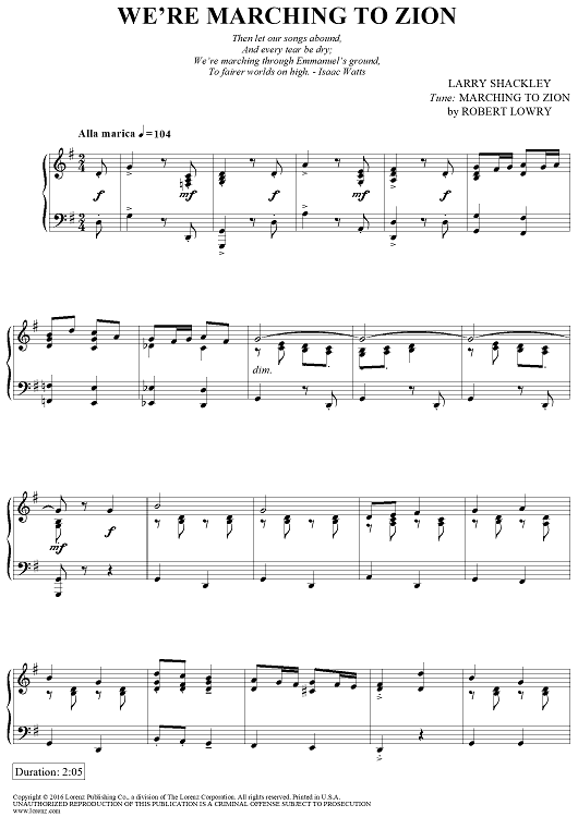 Digital Sheet Music for We're Marching To Zion by Robert Lowry, Larry Shackley scored for Piano Solo; id:463221