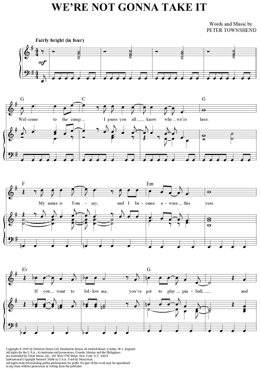 "We're Not Gonna Take It" Sheet Music by The Who