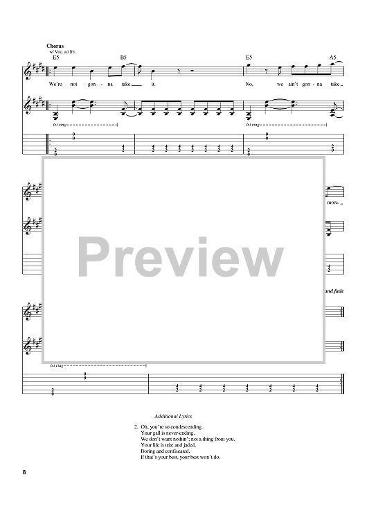 "We're Not Gonna Take It" Sheet Music by Twisted Sister