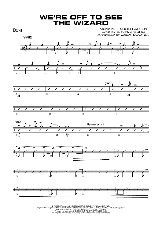 Digital Sheet Music for We're Off to See the Wizard - Drums by Harold Arlen, E.Y. "Yip" Harburg, Jack Cooper scored for Jazz Ensemble; id:359007