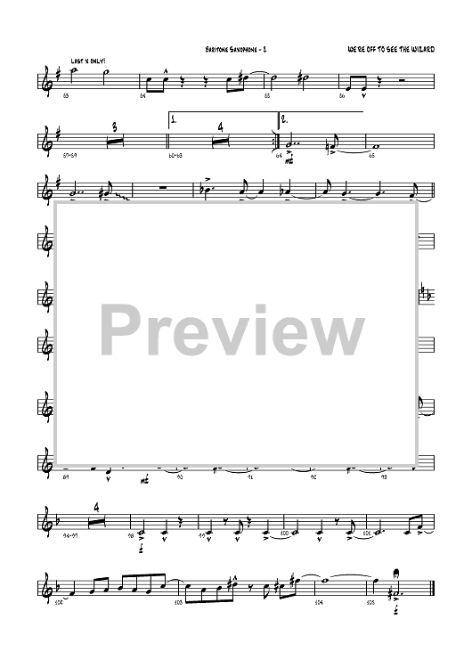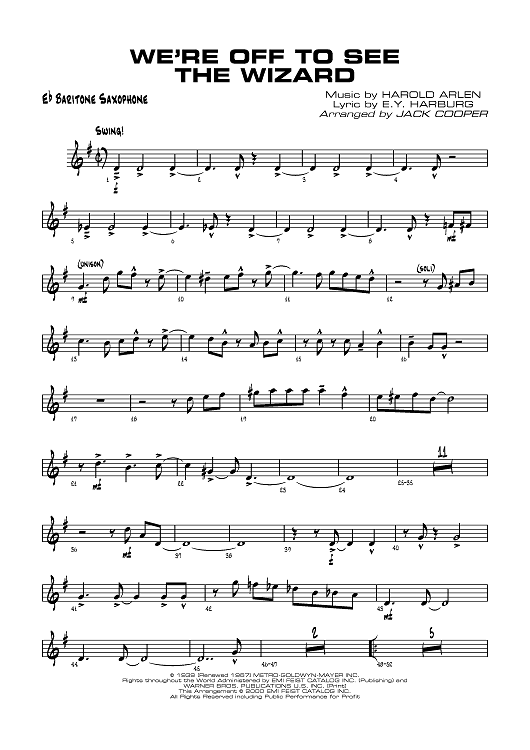 Digital Sheet Music for We're Off to See the Wizard - E-flat Baritone Saxophone by Harold Arlen, E.Y. "Yip" Harburg, Jack Cooper scored for Jazz Ensemble; id:358995