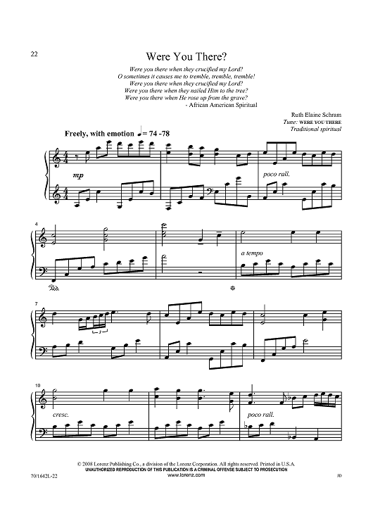 Digital Sheet Music for Were You There? by Ruth Elaine Schram, Traditional Spiritual scored for Piano Solo; id:434116