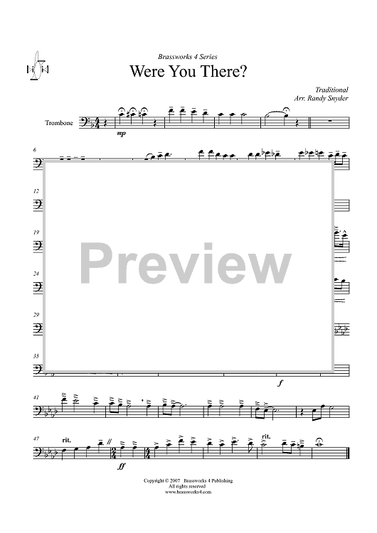 Digital Sheet Music for Were You There? - Trombone by Traditional, Randy Snyder scored for Brass Quartet; id:361070