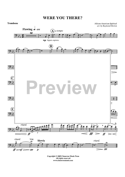Digital Sheet Music for Were You There? - Trombone by Raymond Horton, African American Spiritual scored for Trombone/Piano; id:417249