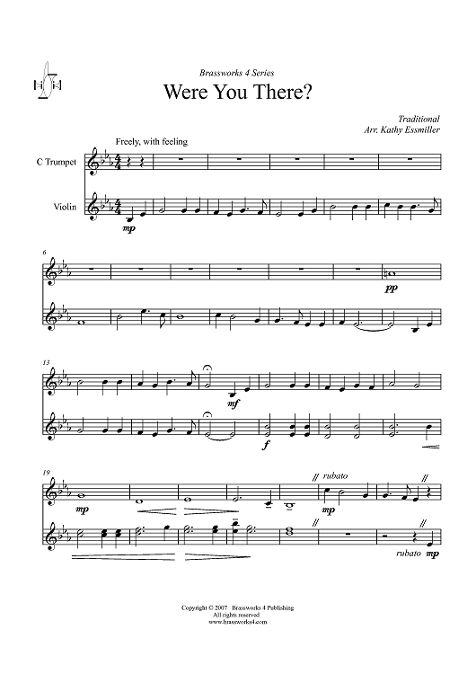Digital Sheet Music for Were You There? - Trumpet in C/Violin by Traditional, Kathy Essmiller scored for Trumpet/Violin; id:364166
