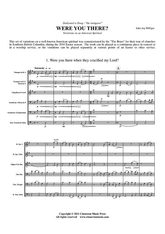 Digital Sheet Music for Were You There? - Variations on an American Spiritual - Score by John Jay Hilfiger, African American Spiritual scored for Brass Sextet; id:425232