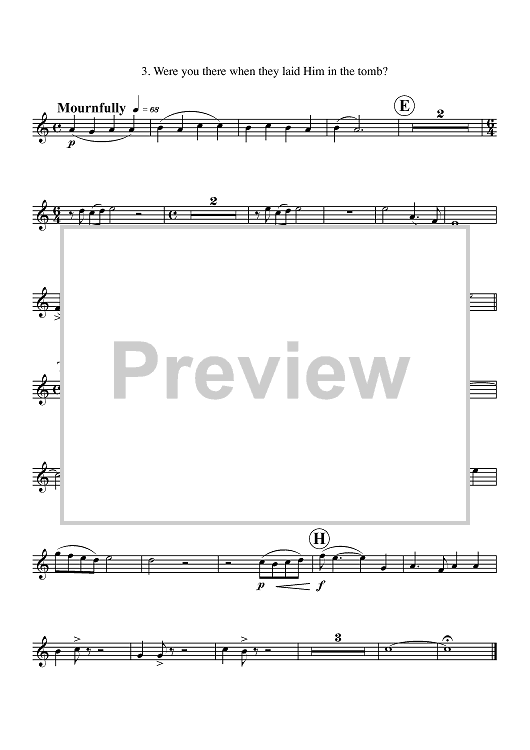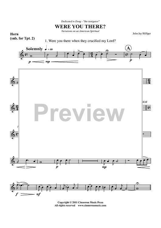 Digital Sheet Music for Were You There? - Variations on an American Spiritual - Trumpet 2 in Bb/Horn in F by John Jay Hilfiger, African American Spiritual scored for Brass Sextet; id:425234