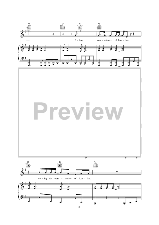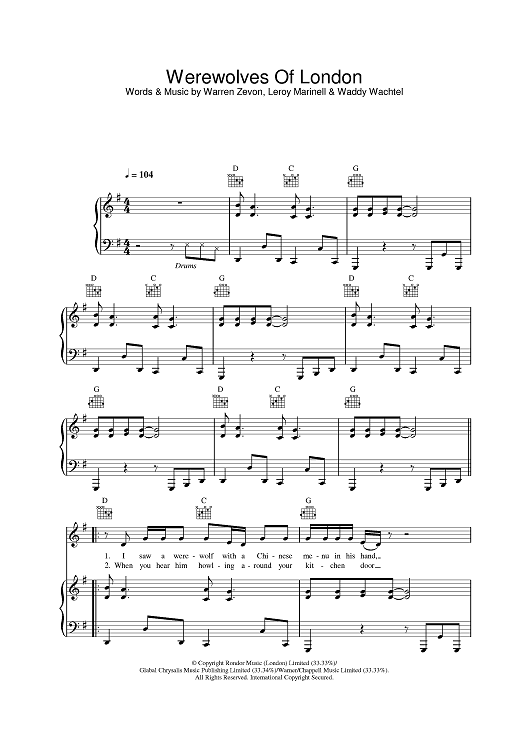 Digital Sheet Music for Werewolves Of London by Warren Zevon scored for Piano/Vocal/Chords; id:378326